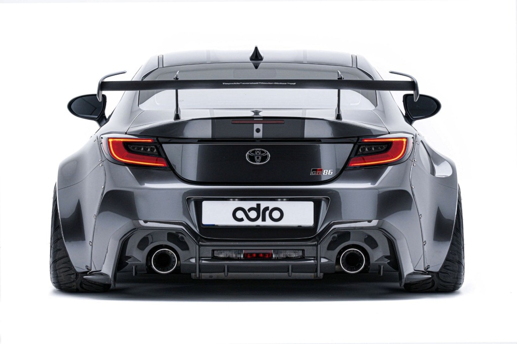 The rear end of the GR86 was just redesigned, but now you can take it even further with the ADRO carbon fiber rear diffuser. This gorgeous rear diffuser is made from real, hand-crafted carbon fiber and will add a whole new level of aggression to the rear of the car. Of course, the exhaust outlets are also enlarged to fit a wide range of aftermarket exhaust systems. This is one of the most aggressive diffuser designs for this platform and is super easy to install.