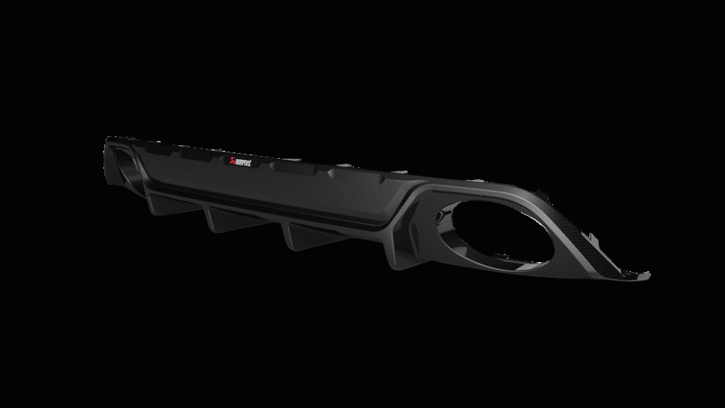 This Rear Carbon Fiber Diffuser - High Glossy comes with red/white Akrapovič logo.