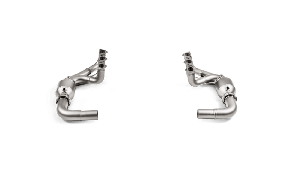 Evolution Race Header Set for Akrapovic 2014 - 2017 PORSCHE 911 GT3 RS (991) & PORSCHE 911 GT3 (991) converts the slip-on system into a full system, built for the track and gives the Porsche GT3 RS the extra performance to match. Beautifully made from hi-grade titanium and with a coating, the Evolution Race Line is as striking to look at as it is use. From the handcrafted titanium headers with 100 cpsi sports catalytic convertors and titanium flanges—cast in Akrapovic’s own foundry—right through to the superbly finished round titanium tailpipes, the Evolution Race Line is pure quality. The system offers a perfect power curve right from 3,000 rpm to the very top of the power band, designed to continually increase performance as the revs rise. Along with improved torque and the maximum weight savings to enhance handling, the Evolution Race Line exhaust system will have the car performing like a true cup racer—with a deep, loud, and powerful Akrapovic racing sound to match its performance.