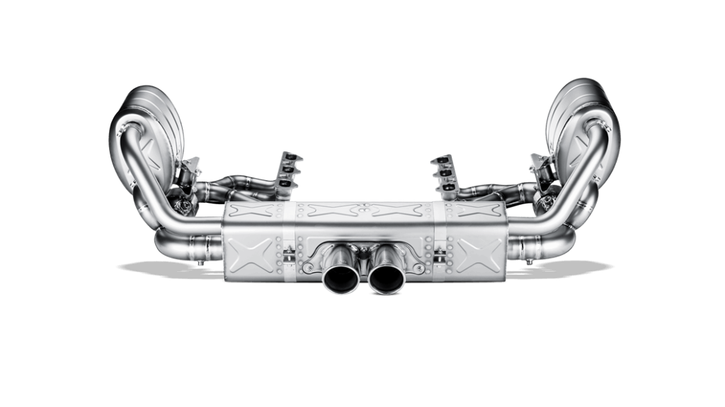 The Akrapovic fully titanium Evolution exhaust system for 2006 - 2009 Porshe 997 / 911 GT3 / RS 3.6 complements the Slip-On muffler and tailpipes with a newly developed exhaust manifold with 100 cpsi sports catalytic convertors that guarantee an increase in power and torque, as do the newly developed and optimized pre-mufflers. However, the real plus of this performance exhaust system is the weight reduction, while it maintains the original layout and functionality of the exhaust caps. The weight distribution of the vehicle is improved considerably, and the weight reduction behind the engine and the rear axle enhances the handling. The sound impression in this configuration is somewhat more voluminous and, with opened caps, more aggressive than in the original version.