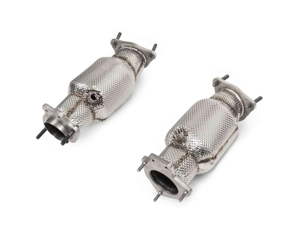 Constructed from high-grade austenitic stainless steel, each link pipe contains a 200 cpsi catalytic converter and the set weighs over 43% less than the stock equivalent. A tuned resonator – specially developed for the engine – provides a unique deep, rich, and sporty sound with no drone. Designed for use with the Akrapovič Slip-On Line (Titanium) exhaust system and for use on racetracks and closed courses only, remapping is mandatory when installing this product.