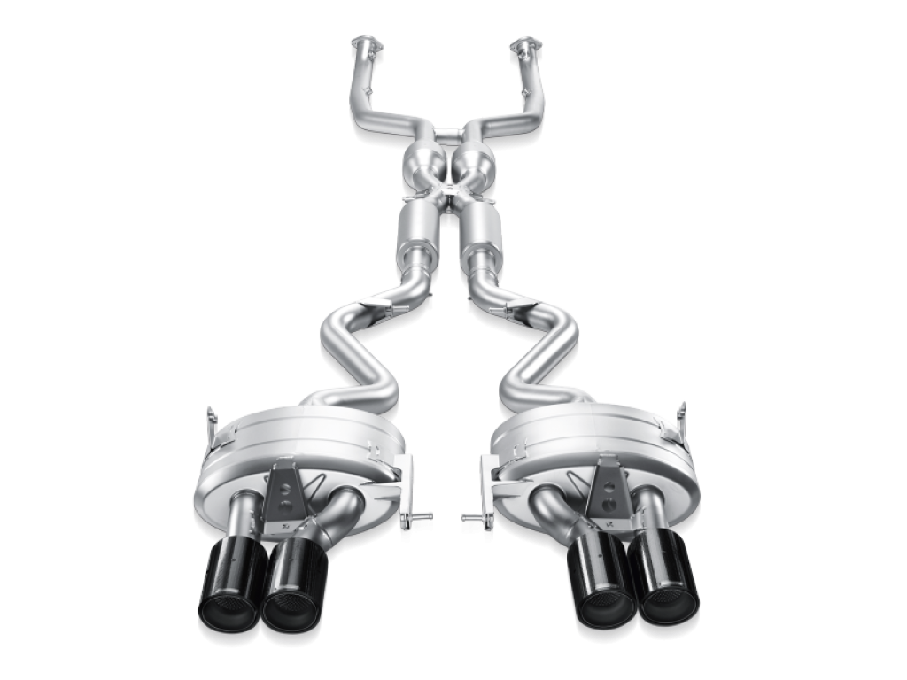 The fully titanium Evolution Exhaust System for the BMW M3 consists of flow optimized link pipes and an “X” pipe that incorporates high flow 100 cpsi sports catalysts and integrated resonators. A pair of newly developed dual-outlet mufflers completes the kit. The all Titanium system reduces the weight of the exhaust by 53lbs when compared to the factory x pipe and rear mufflers. The Evolution system increases the E9x M3’s power output by 22 horsepower with a re-engineered x pipe and removal of the factory catalytic converters.