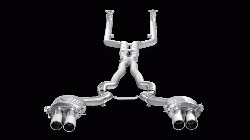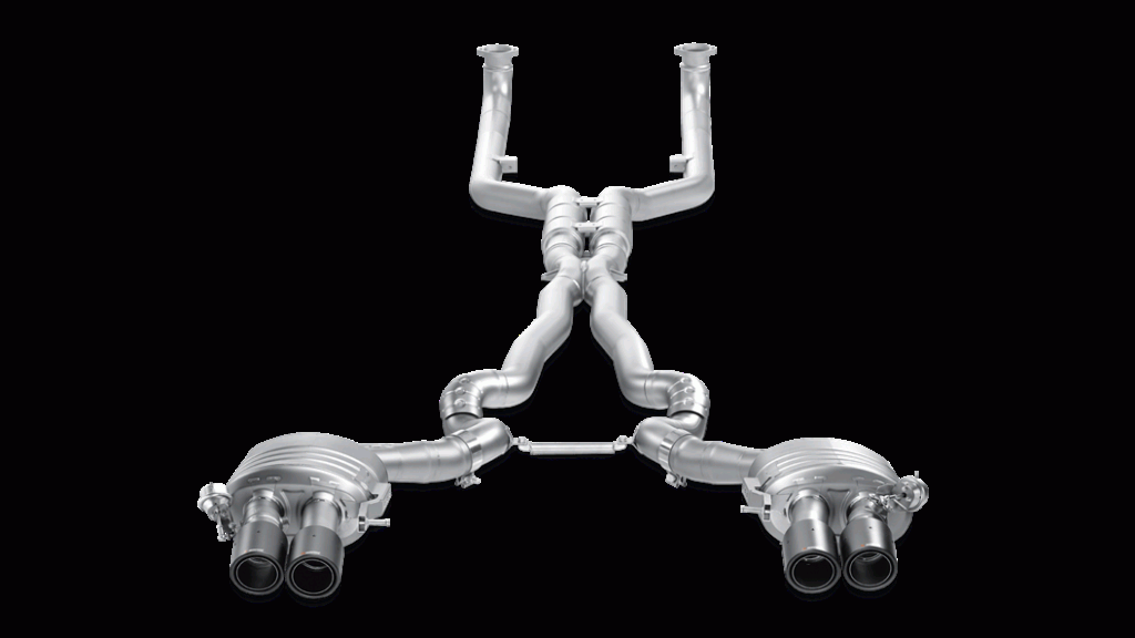 The Evolution exhaust system for 2012 - 2018 BMW M56 (F12, F13) made of our proprietary titanium consists of newly developed dual-outlet mufflers with exhaust valves, flow-optimized pipes, and a unique cast titanium X-shaped part with resonators. Back pressure is lowered and the M6 benefits from more power throughout the entire range of rpms. It increases responsiveness and an improved power-to-weight ratio has been achieved without removing the catalytic converters. The Evolution performance exhaust offers a deep sporty sound, growing to an aggressive roar when driven hard but without droning. It works well with the M6’s ANC system - just like the valve system, which is regulated through the M6’s settings.Complete the look with a set of four exquisite tailpipes in carbon fibre.