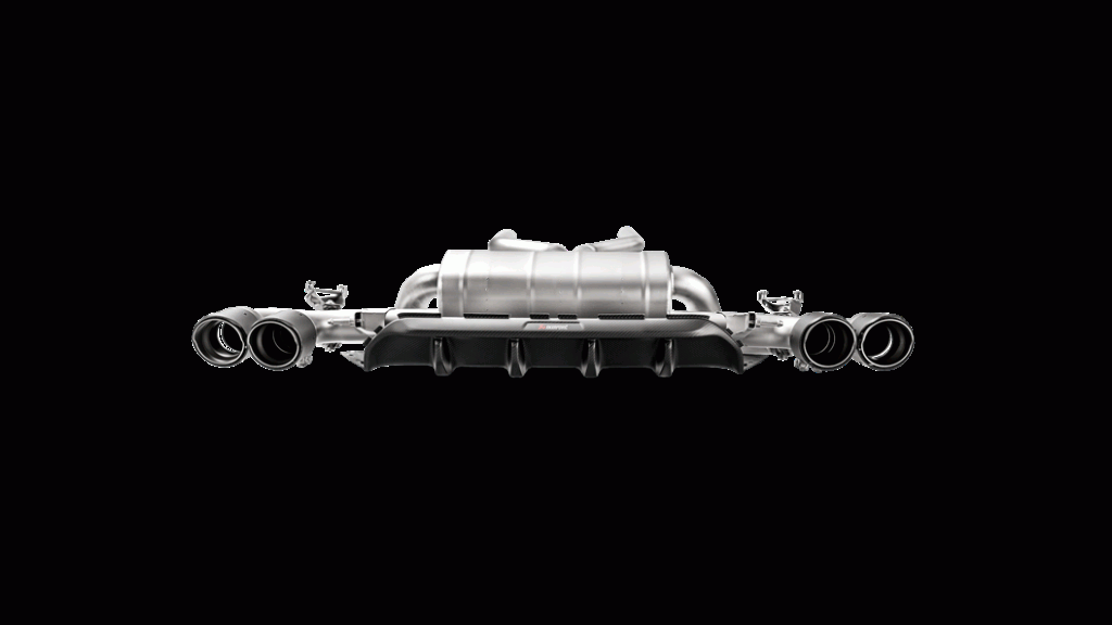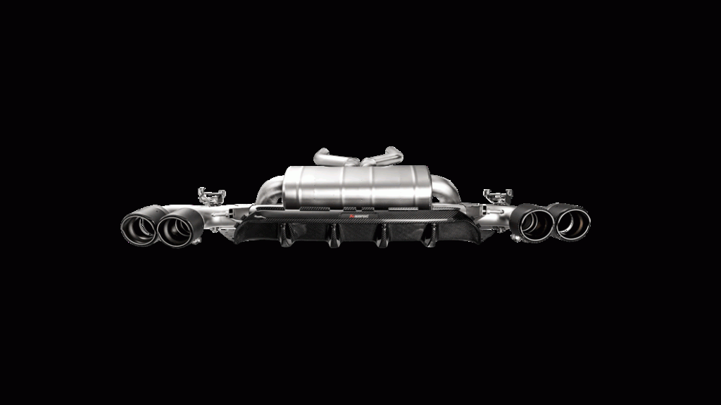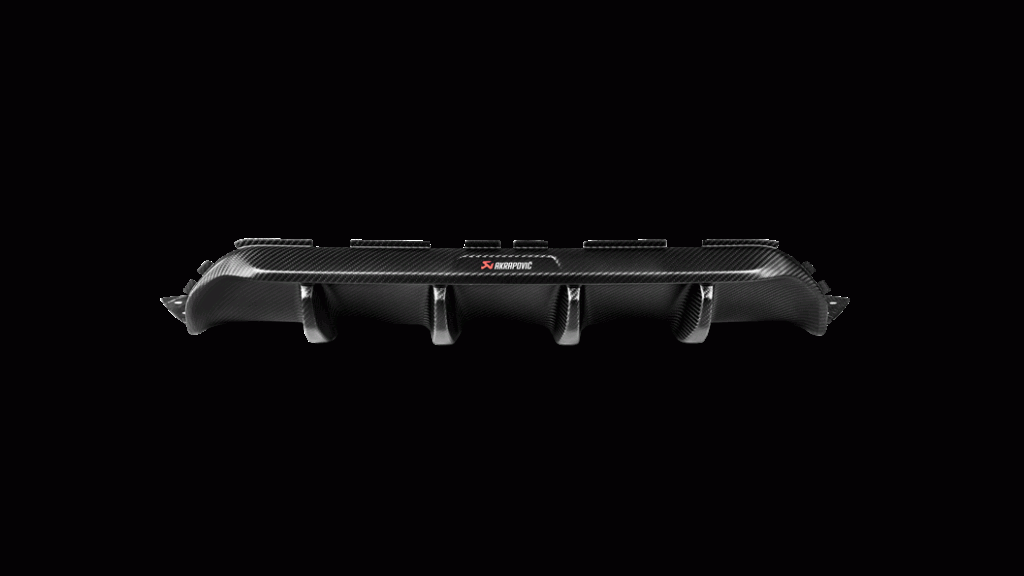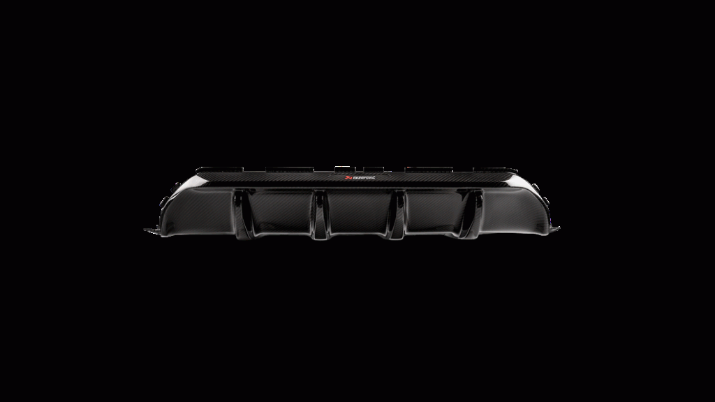 This Rear Carbon Fiber Diffuser - High Glossy, comes withred/white Akrapovič logo.