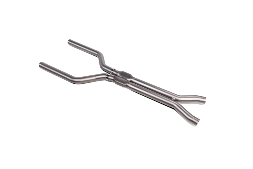 This full titanium accessory features complex parts cast in Akrapovič’s in-house foundry and is constructed from lightweight high-grade alloys to reduce weight. Combining the Evolution Link pipe set (Titanium) with the Slip-On Line (Titanium) exhaust creates a system that is perfectly in tune to deliver the very best aural experience in all driving modes. Akrapovič’s sound engineers have worked hard to produce a sporty V8 sound with an unmistakable Akrapovič character, while keeping it smooth and eliminating any drone, all designed for maximum everyday comfort. The sound is closer to that of a muscle car and delivers an exhilarating soundtrack. With a cast collector on the link pipe, where the gases from both sides of the engine mix, the link pipe provides a smooth flow for the gas and aids in providing the perfect sound as an ideal upgrade for the Slip-On Line (Titanium). Akrapovič has achieved power gains of 17.7 hp at 4,550 rpm and torque increases of 27.3 Nm at 4,550 rpm when tested on the Akrapovič dyno against a BMW X5M with a stock M Sport exhaust system for comparison.