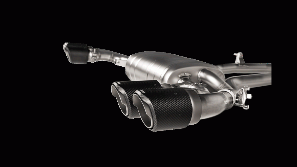 Manufactured to exacting specifications from high-gradetitanium– with parts cast in Akrapovič’s in-house foundry – this system utiliseslightweightmaterials to reduce overall vehicle weight and optimizepowerand torque through the entire rev range. MeetingECEtype approval, the design of the system fully adapts to the lines of the car, and the single-muffler layout with four superb hand-craftedcarbon-fibreround tailpipes give a distinctive look to the rear of the car. Various sound modes add to the experience, with a sporty and animated roar from the six-cylinder engine when the revs rise, and a more pleasing experience in comfort mode.
