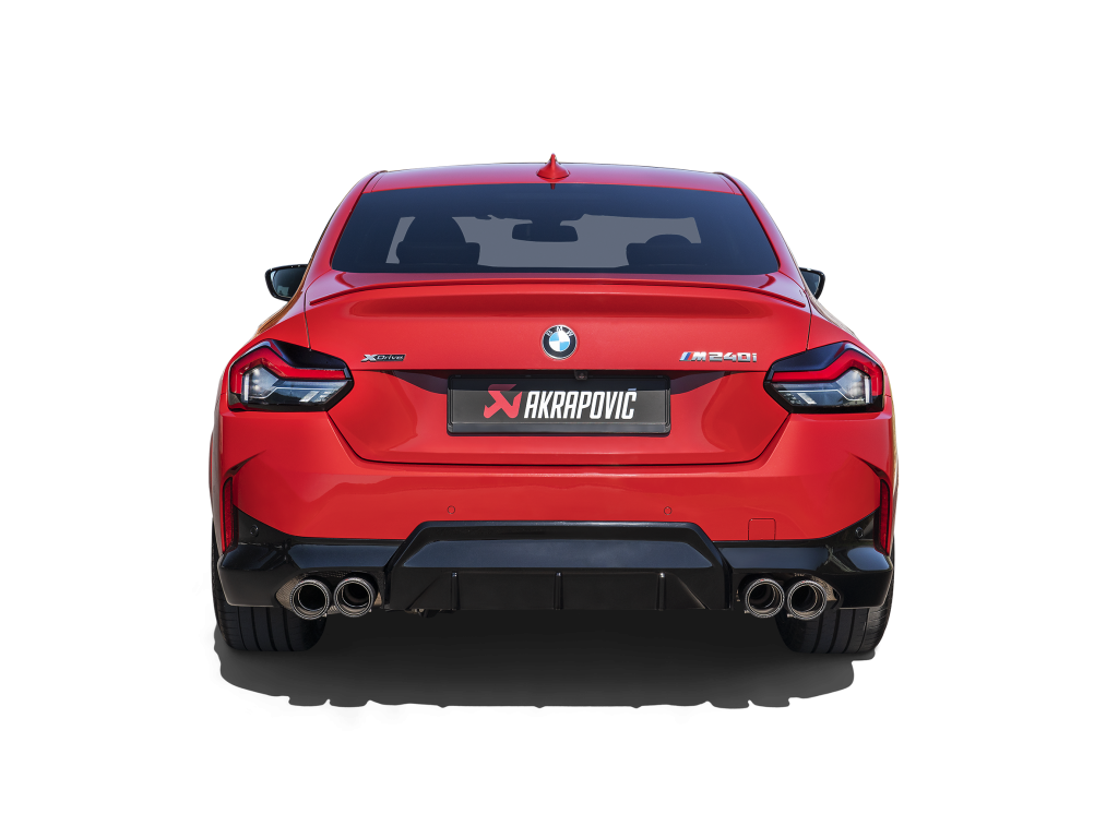 Offering a noticeable weight savings, increased power and torque, and a dramatic soundtrack, this system is constructed from lightweight high-grade titanium and completed with hand-crafted carbon-fibre tailpipes. Power and torque are increased by 7.1 Kw (9.7 hp) at 2,450 rpm and 20.5 Nm at 2,450 rpm when tested on the Akrapovič dyno against a BMW M240i with a standard stock exhaust. An exhilarating soundtrack is delivered through the use of special parts fitted in the system. Two valves – instead of one, as in the stock configuration – are calibrated to tailor the sound, and two acoustic reflectors are fitted on the tailpipes to guide the sound into the car’s cabin and change the driving experience, producing a fully immersive sound in the car’s cockpit, to supply thrills and enjoyment that can be enjoyed by all occupants. Because the Akrapovič Slip-On Line (Titanium) exhaust system has two valves, one more than the stock configuration, a TNG controller is included in the product to activate the additional exhaust valve. Two resonators, one on each side of the central muffler, perfect the sound experience.