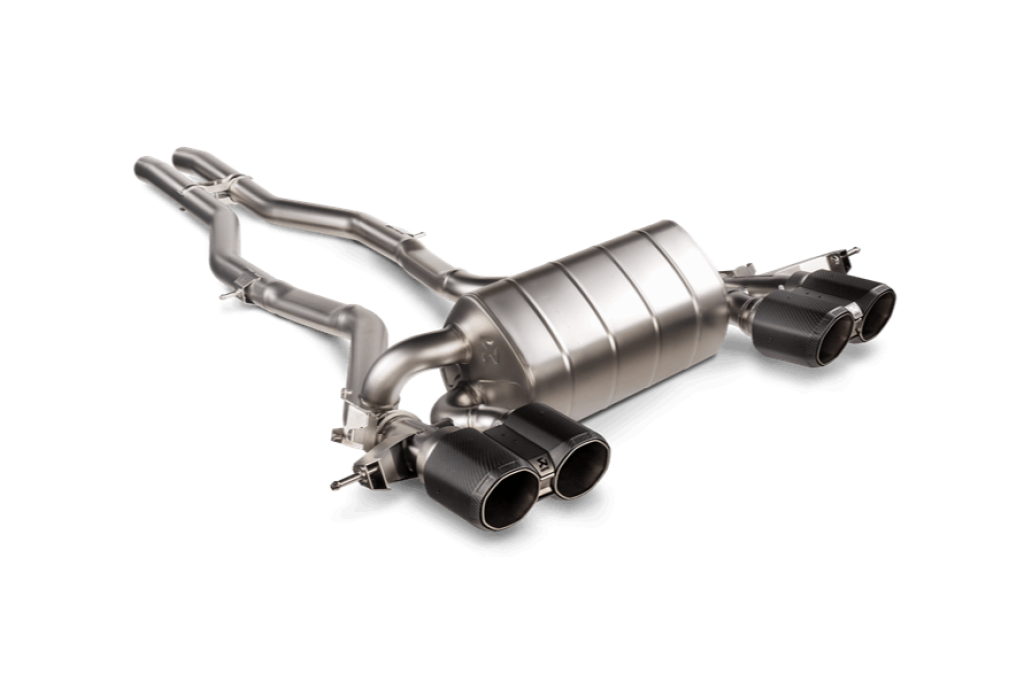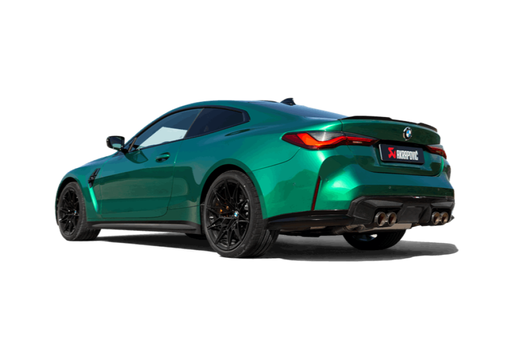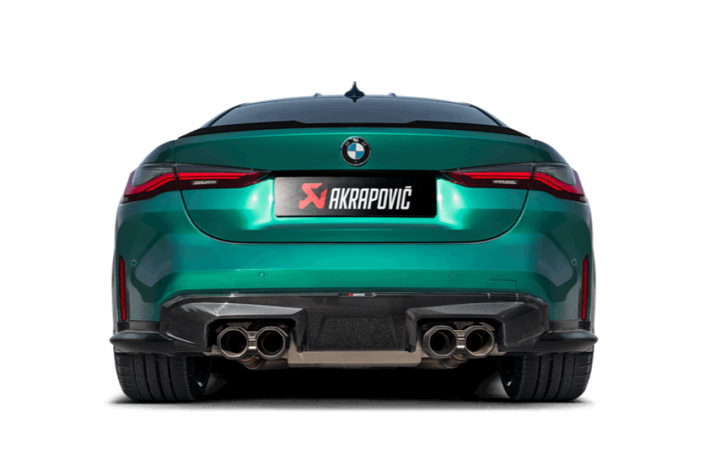 The system delivers power increases of 8.0 kW (10.9 hp) at 6,000 rpm and a torque gain of 13.9 Nm at 5,000 rpm when tested on the Akrapovič dyno against a BMW M4 Competition with a standard stock exhaust. Remapping is not needed for this configuration, and it fits all vehicles (OPF and non-OPF), but the ECE certificate is valid only for cars equipped with an OPF filter.