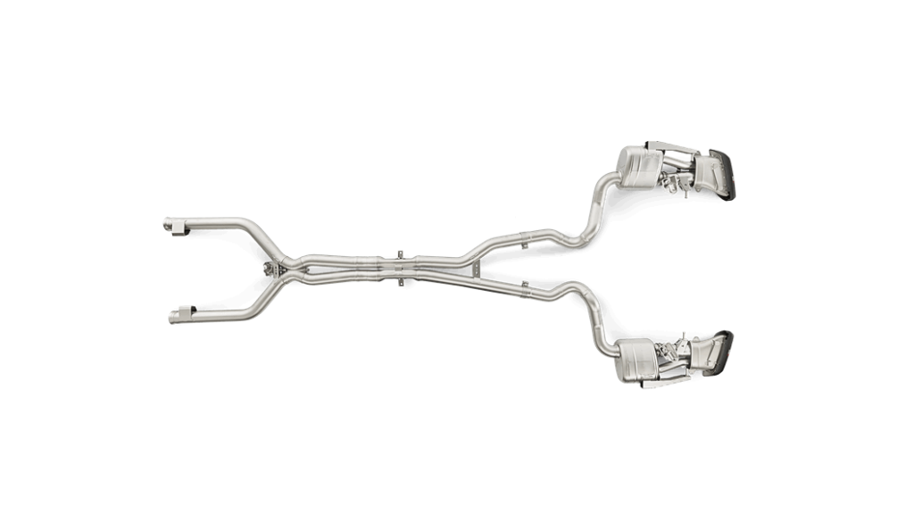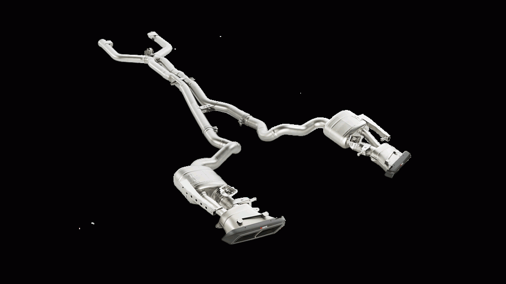 Perfectly formed using specially developed ultra-lightweight titanium alloys and finished with hand-crafted matte carbon-fibre tailpipes. The system replaces both the base and performance exhausts fitted to 2015 - 2018 MERCEDES-AMG C63 ESTATE (S205) & MERCEDES-AMG C63 SEDAN (W205). This stunning system includes parts cast in the company’s in-house foundry, featuring an active X connection and an additional pair of exhaust valves behind the rear mufflers, designed to provide optimal control of the exhaust sound for the best aural enjoyment. With two defined sound characteristics and three different driving sound settings, the system has been perfectly tuned to deliver the very best sound in all modes. The optional Akrapovic Sound Kit controller allows the user to choose the exhaust tone regardless of the chosen mode of the vehicle and is a recommended upgrade when replacing the base exhaust system. An increase in performance and torque and a huge weight savings in excess of 45% makes this a very serious performance upgrade. Because it is ECE type approved with no need to remap the ECU or add any other parts, it is just a simple plug-and-play installation. The exquisite Akrapovic Evolution Line (Titanium) exhaust system adds performance and style, along with an amazing soundtrack.