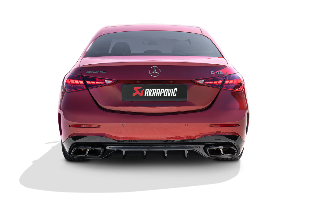 Performance has not been overlooked, and the Mercedes-AMG C 43 4MATIC delivers an increase of 6.6 kW (8.6 hp) at 6,650 rpm in power and a rise of 13.5 Nm of torque at 2,650 rpm, while the Mercedes-AMG C 63 S E PERFORMANCE recorded a power increase of 7.1 kW (9.6 hp) at 2,000 rpm and a torque gain of 33.7 Nm at 2,000 rpm when tested on the Akrapovič dyno against the same car with a standard stock exhaust. Weight has also been reduced through the use of race-proven lightweight materials, with the Slip-On Line (Titanium) losing 26.5% (3.6 kg) compared to the standard stock version of the Mercedes-AMG C 43 4MATIC exhaust, and 26.8% (3.7 kg) has been reduced from the equivalent standard exhaust of the Mercedes-AMG C 63 S E PERFORMANCE.