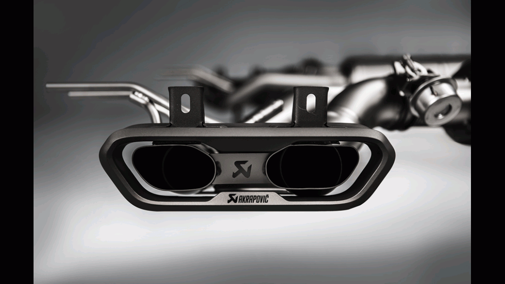 An optional Akrapovic Sound Kit is available to control the different sound settings. Optional downpipes are also offered to provide full exhaust-tuning capabilities.