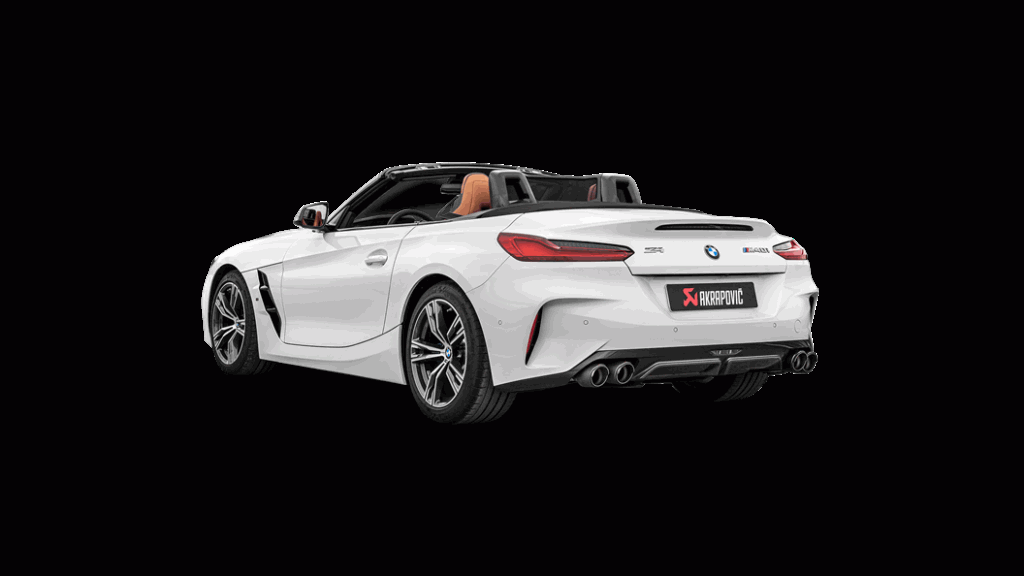 Manufactured for 2019 BMW Z4 M40I (G29) to exacting specifications from high-grade titanium – with parts cast in Akrapovic’s in-house foundry – this system utilises lightweight materials to reduce overall vehicle weight and optimize power and torque through the entire rev range. Meeting ECE type approval, the design of the system fully adapts to the lines of the car, and the single-muffler layout with four superb hand-crafted carbon-fibre round tailpipes give a distinctive look to the rear of the car. Various sound modes add to the experience, with a sporty and animated roar from the six-cylinder engine when the revs rise, and a more pleasing experience in comfort mode, ideal for cruising with the roof down.