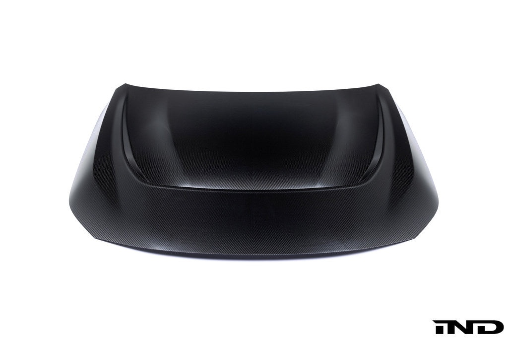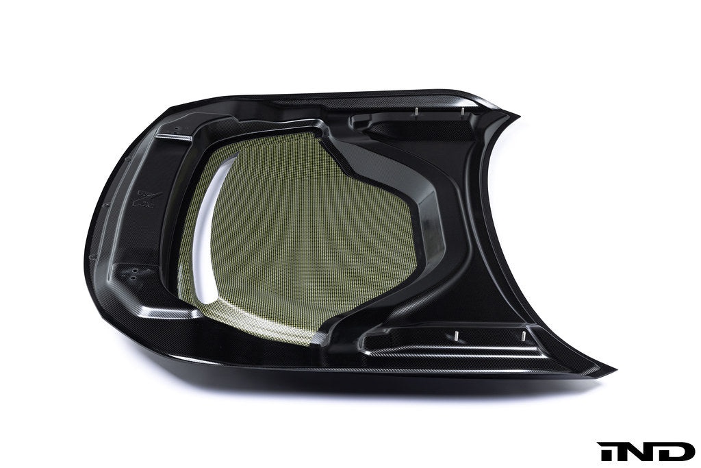 Their new carbon vented hood for the G87 M2 is made entirely of carbon fiber with an additional layer Kevlar on the inside, which serves the stability. Taking some queues from their F87 GTS carbon hood and BMW's F87 M2 CS, this vented carbon hood weighs 19 lbs, down 7.5lbs from the factory.