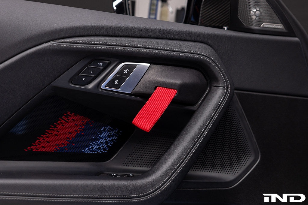 Alpha-N's G87 M2 Door Release / Pull Conversion Kit allows you to replace your OEM plastic door handles with pull strap-styled latch popularized by Porsche RS models. The door pull kit comes complete for a direct installation and finished look.