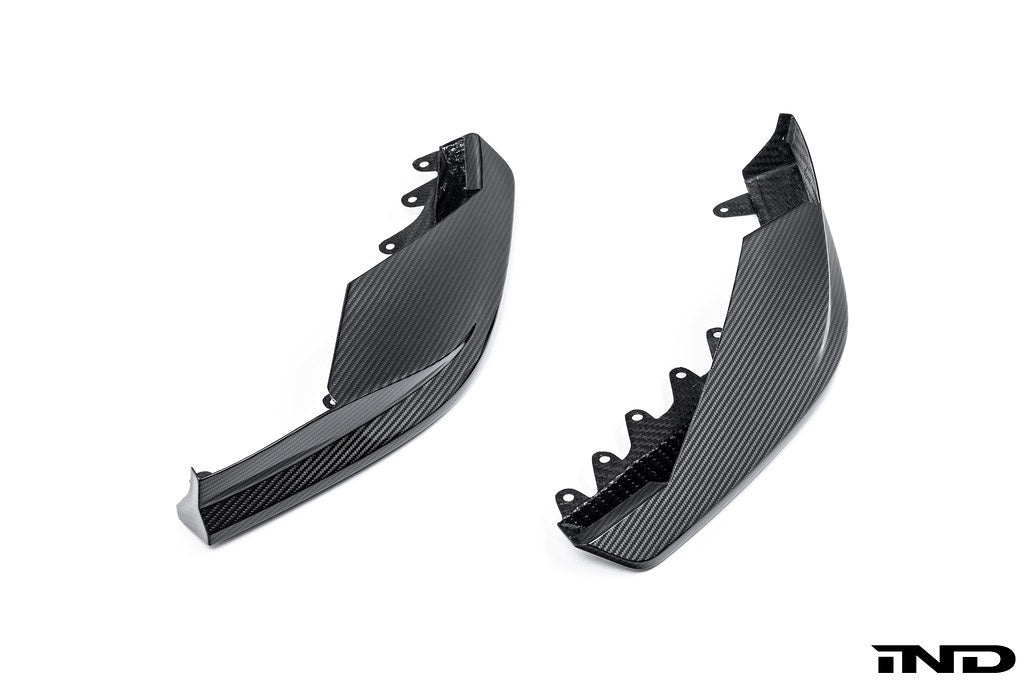 Add some aggression and style to the front of your G90 M5 or G99 M5 Touring. The carbon fiber side corner splitter set (2 pcs. left + right) from Alpha-N are much deeper and lower than the factory front bumper corner trim, while also more aggressively extending into the center of the bumper to give a significantly more performance oriented look to the factory chin splitter.