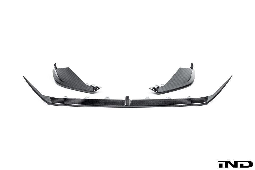 Go one step further than Alpha-N's corner splitters with a full 3-piece carbon front lip for your G90 M5 or G99 M5 Touring. In addition to the aggressive side corner splitters, this front spoiler package adds a center chin splitter that works in concert with the 2-piece corner splitters. Significantly more performance oriented look to the factory chin splitter.