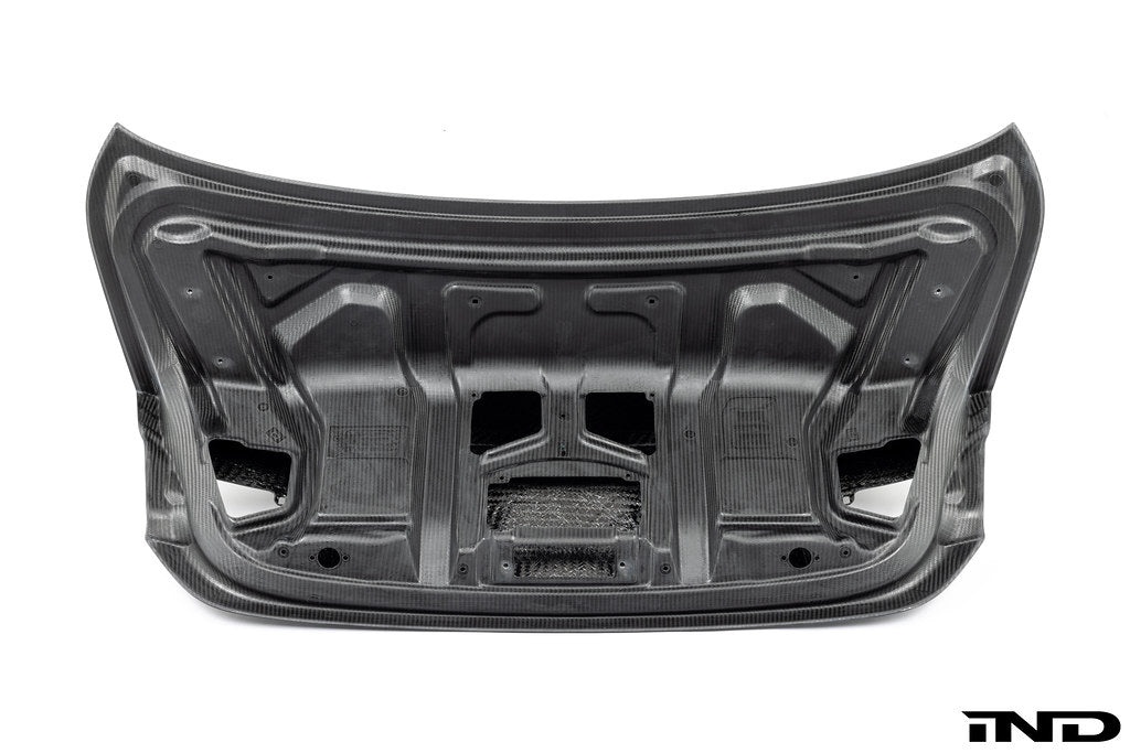 The Alpha-N x RKP F82 M4 Carbon Fiber Trunk Lid is the product of an exclusive collaboration between Alpha-N Performance and RKP Composites. This trunk lid represents the perfect blend of Alpha-N’s expertise in high-performance production and RKP’s mastery in precision design, crafted to enhance both the appearance and functionality of the BMW F82 M4.