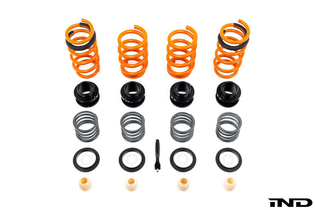 AST Height Adjustable Springs (HAS) Systems are a great alternative to conventional lowering springs. You no longer have to be satisfied with a fixed lowering height. AST HAS systems allow you to adjust the vehicle ride height with the integrated height adjuster even after the kit has been installed. All driver assistance systems and comfort features of a factory adaptive or electronic suspension remain operational and work harmoniously with our vehicle-specific spring set up.