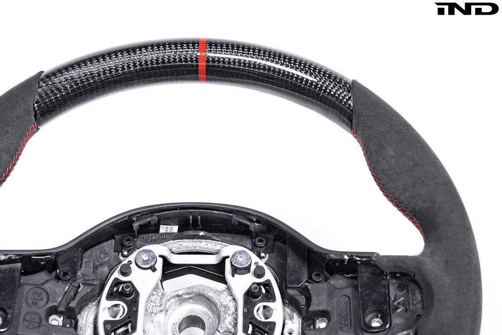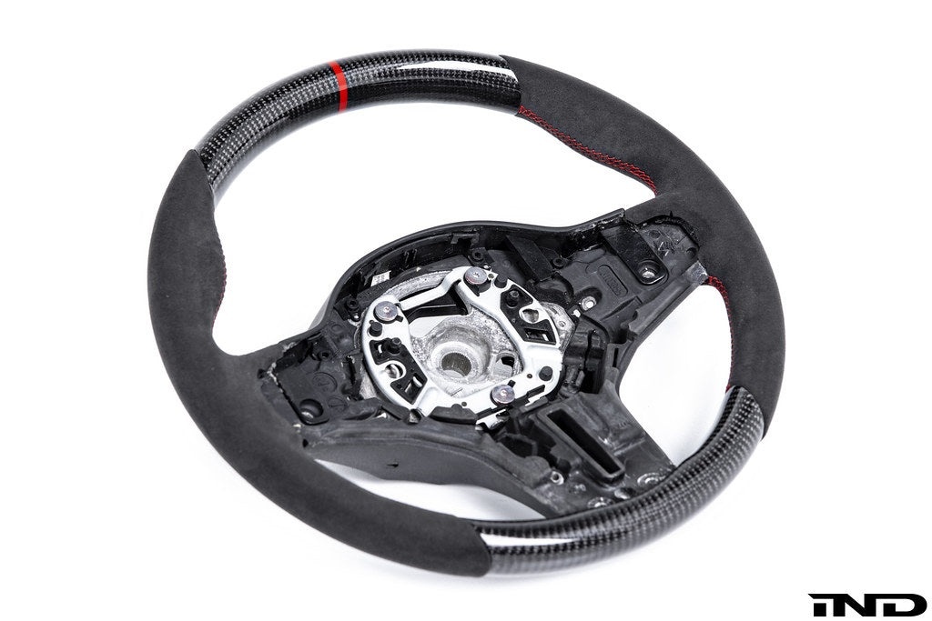 This is our latest addition to our lineup of carbon fiber steering wheels. Utilizing the OEM BMW core, this steering wheel is made to the specifications of the factory piece while adding a touch of flash and flavor to the wheel.