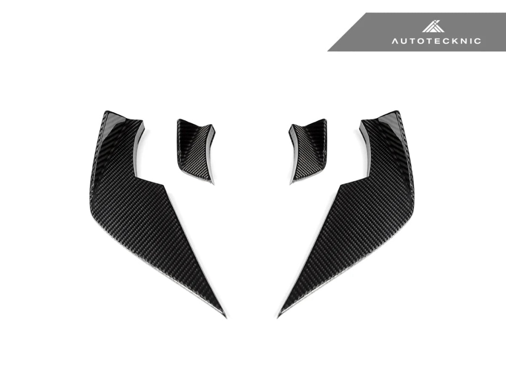 Introducing the AutoTecknic Dry Carbon Fiber Corsa Canards, the ultimate aerodynamic-enhancement for your BMW. Crafted from lightweight and durable carbon graphite composites, these canards offer a comprehensive solution to tune the front of your car's handling.