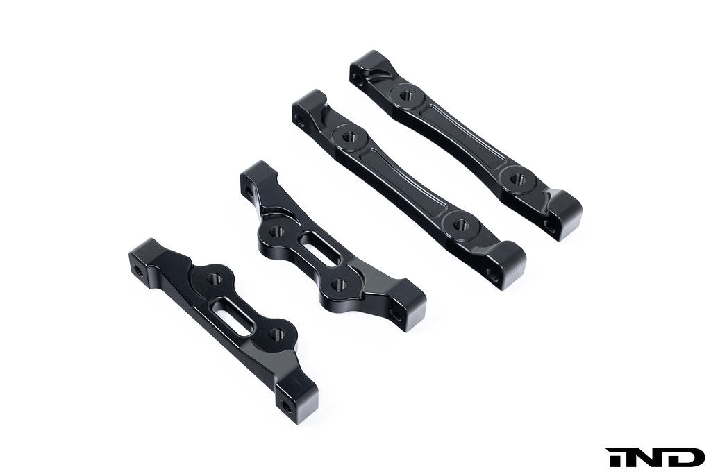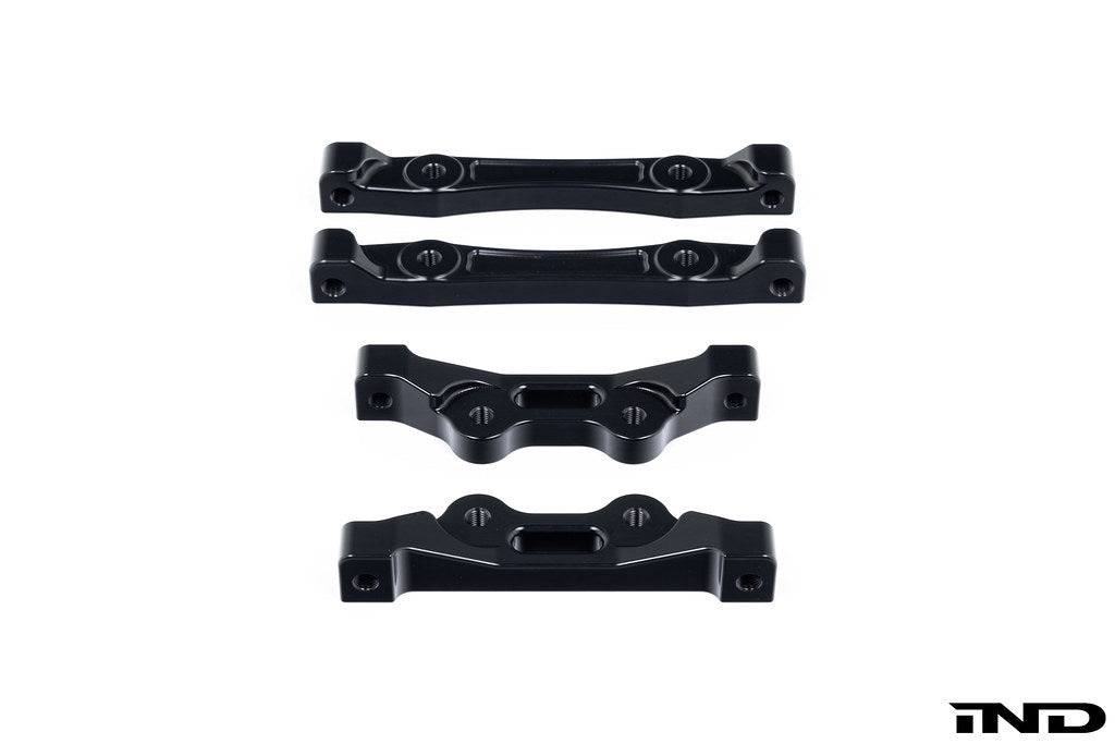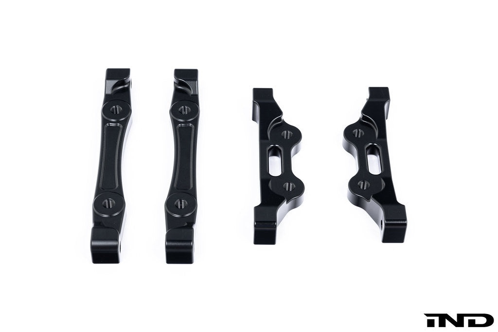 Fall-Line Motorsports’ bracket set ensures that the installation process is secure and are precisely machined, which includes pocketing that both minimizes weight while maximizing strength to guarantee no failures even under race track conditions. As a final touch, the caliper brackets are anodized in a hard coat black finish.