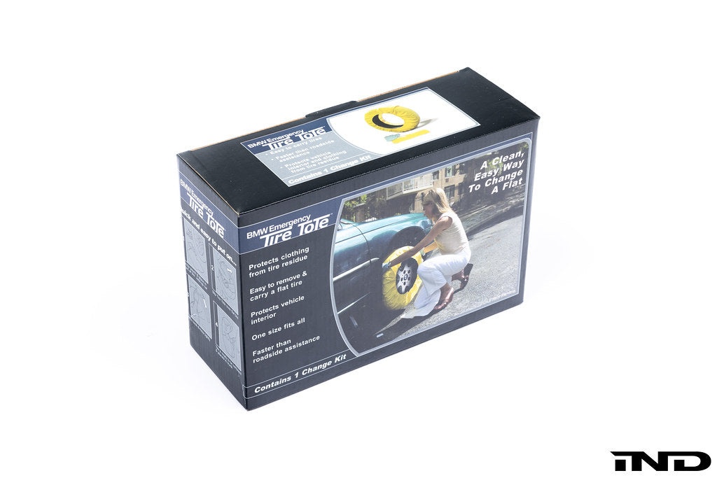 Tough, polyethylene tire cover protects you and your clothing from residue during tire change. Includes two durable handles for easy carrying, a kneeling mat and gloves for additional comfort. One size fits all BMW Cars and SAVs.