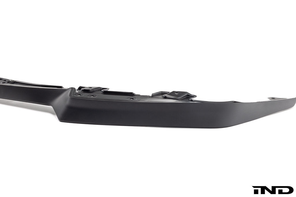 The BMW M2 CS factory front splitter is now available at IND. This genuine BMW aero component is engineered using flexible thermoplastic elastomer (TPE), offering OEM-grade durability and impact resistance. Unlike rigid carbon fiber designs, the M2 CS splitter uses a highly resilient plastic–rubber composite that can flex under contact, reducing damage when scraping against steep driveways or uneven surfaces.