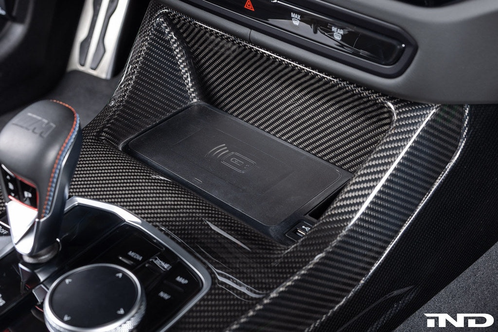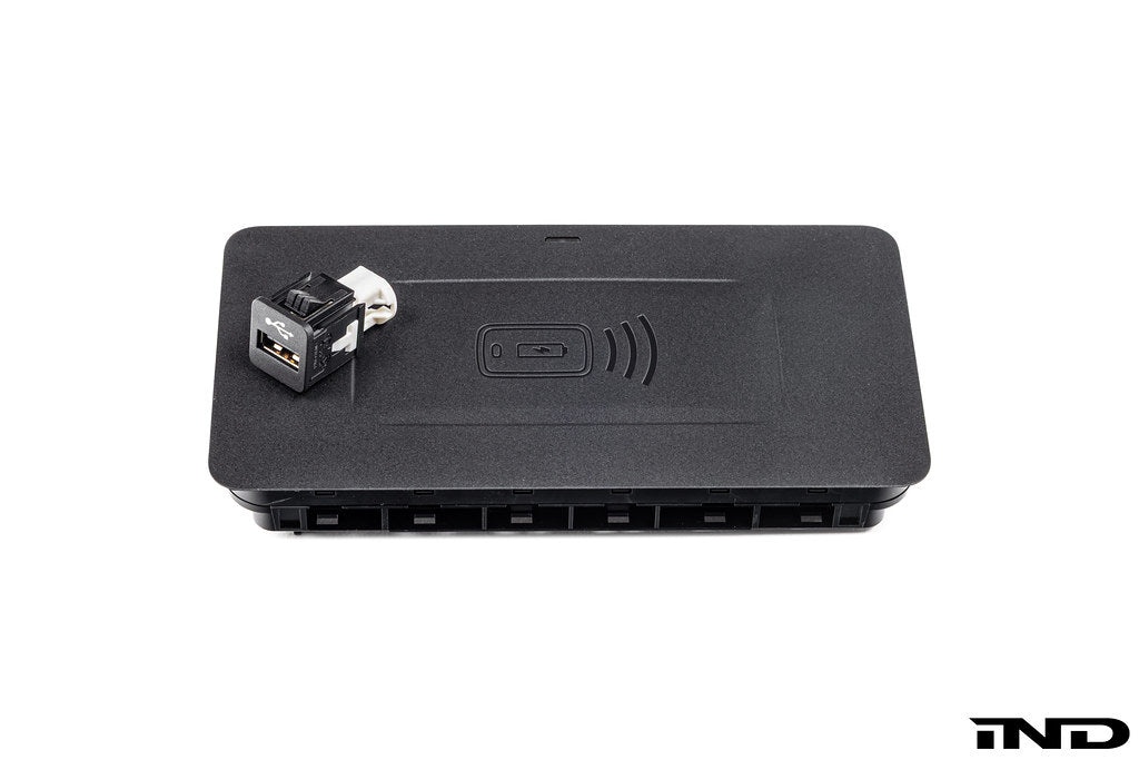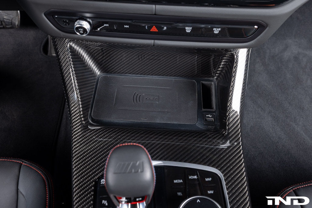 Genuine BMW factory replacement wireless charging pad with matching USB port for the G80 M3 CS, G82 M4 CS, and M4 CSL. Use as a direct OEM replacement or pair it with the Karbonius CSL carbon fiber center console, which is designed to accommodate the factory CS/CSL wireless pad and USB port for a seamless OEM+ install.