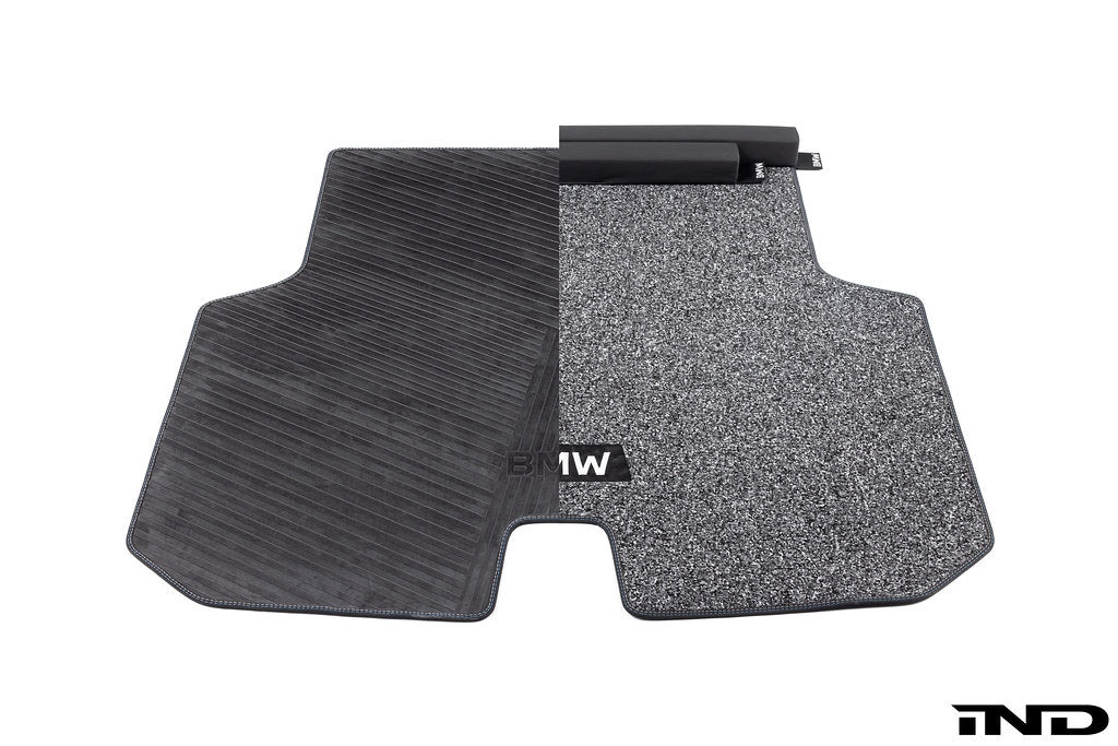 Specifically engineered for the BMW G99 M5 Touring, this OEM cargo liner provides a perfect factory fit and unmatched versatility. The liner is fully reversible, allowing owners to switch between a premium carpeted side for everyday use and a durable rubber surface for added protection when hauling gear. This is the first cargo liner from BMW to feature this dual-sided design. The carpeted side is accented with the iconic “BMW” logo, while the precise cut ensures full coverage of the Touring cargo area. The liner also includes BMW-branded Velcro management blocks that can be installed to help prevent cargo from shifting during transport.