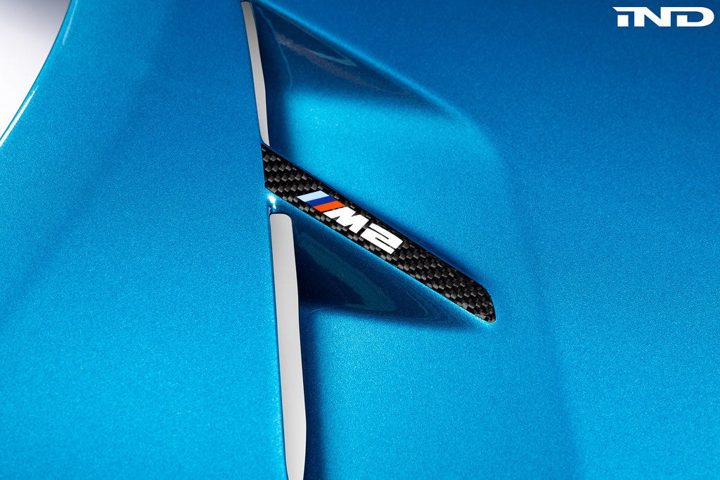 The style of BMW M Performance with the superior quality of Carbon Fiber; what could be better? Get the best of both worlds with the BMW M Performance F87 M2 Carbon Fender Set. A genuine piece from BMW, this fender set will tie together the entirety of your ride’s aesthetic, all while providing the ultimate in lightweight functionality. At IND, bringing your vision to life is always our goal, so if you’re looking for painting options, feel free to contact us. Make your BMW yours and yours alone with unique, luxury parts from IND.