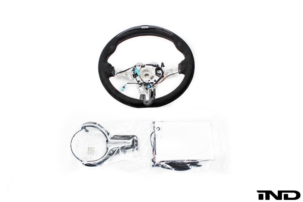 This BMW M Performance Steering Wheel is the perfect addition for any performance enthusiast. The alcantara wrapped wheel will provide excellent grip and comfort in extreme driving situations. Includes matte carbon steering wheel trim.