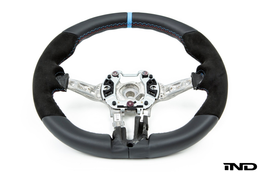 With the right steering wheel, your entire driving experience will change. Drive with the best of the best every time with the genuine BMW M Performance F8X V2 Steering Wheel (non Electronic). This new flat-bottom wheel features M tri-colored stitching, a sleek blue racing stripe at the 12 o’clock position, smooth and high quality leather upper and lower, and Alcantara leather sides/grips. When you shop with IND, you’ll never have to worry about fitment; this piece is original, and guaranteed to fit.