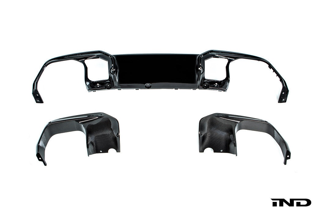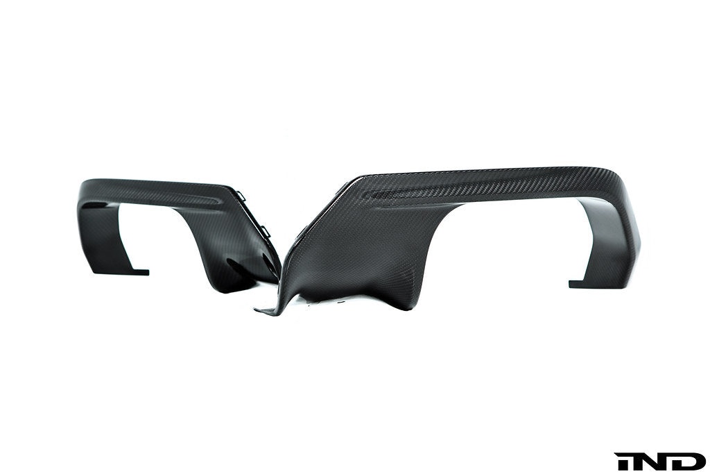 The high-tech material carbon is characterized by a high degree of rigidity and stiffness whilst being extremely light. Consequently, carbon fiber reinforced plastic is used above all in many areas of motorsport, where visible carbon components fascinate with the mesh structure that is so characteristic of this material. Not least for this reason, M Performance exterior components exude a high degree of motorsport atmosphere – and are perfectly suitable for effectively sharpening the sporty looks of the latest BMW icons. The aggressive M Performance carbon rear exhaust trims ensure a menacing look from the rear. Package includes gloss black rear diffuser required for carbon exhaust trim.