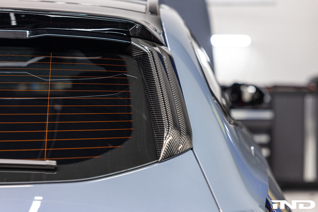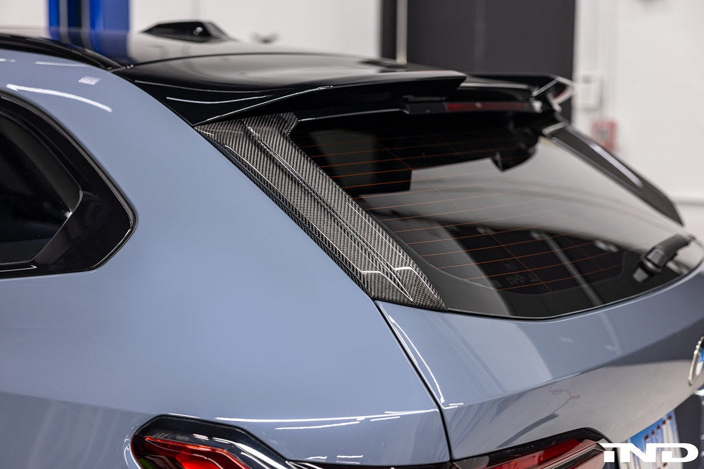 BMW's M Performance Parts for the exterior set individual accents in appearance and at the same time fulfil functional requirements in terms of lightweight construction and aerodynamics. Specially developed for the G99 M5 and G61 5-Series and constructed from carbon fiber reinforced plastic (CFRP) with a high-quality clear lacquer finish, the carbon rear pillar fins add a touch of sportiness and elegance to your Touring.