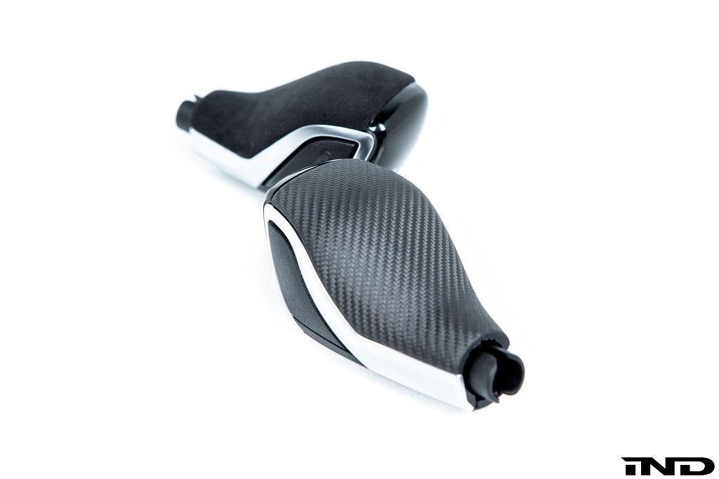 Upgrade the look at feel of your automatic transmission gear selector lever with this genuine BMW M Performance piece. The ergonomic shape of the grip shell and the addition of either matte carbon fiber or Alcantara ensure a dynamic, sporty driving experience . A special highlight is the M badge in metallic on the top of the shift lever.