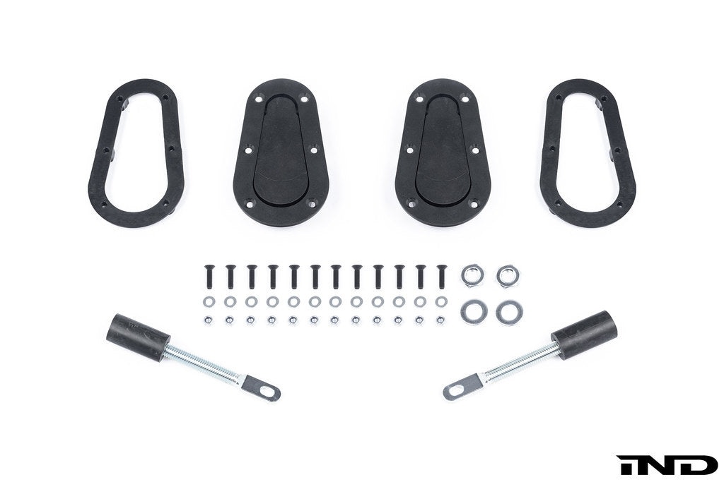 As seen on BMW Motorsport race cars (F22 M235iR / M240iR, F87 M2 CS Racing, F82 M4 GT4, G82 M4 GT3 / GT4, F12 M6 GTLM, F92 M8 GTE, and E89 Z4 GTE). Genuine AeroCatch Hood Latch Kit from BMW Motorsport contains a pair of hood locks and all associated installation hardware.