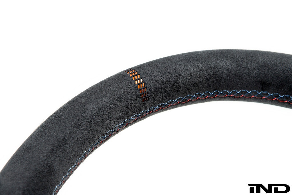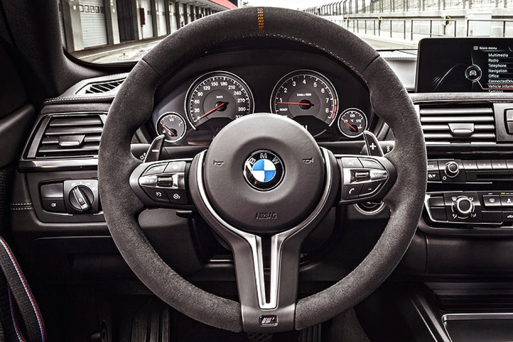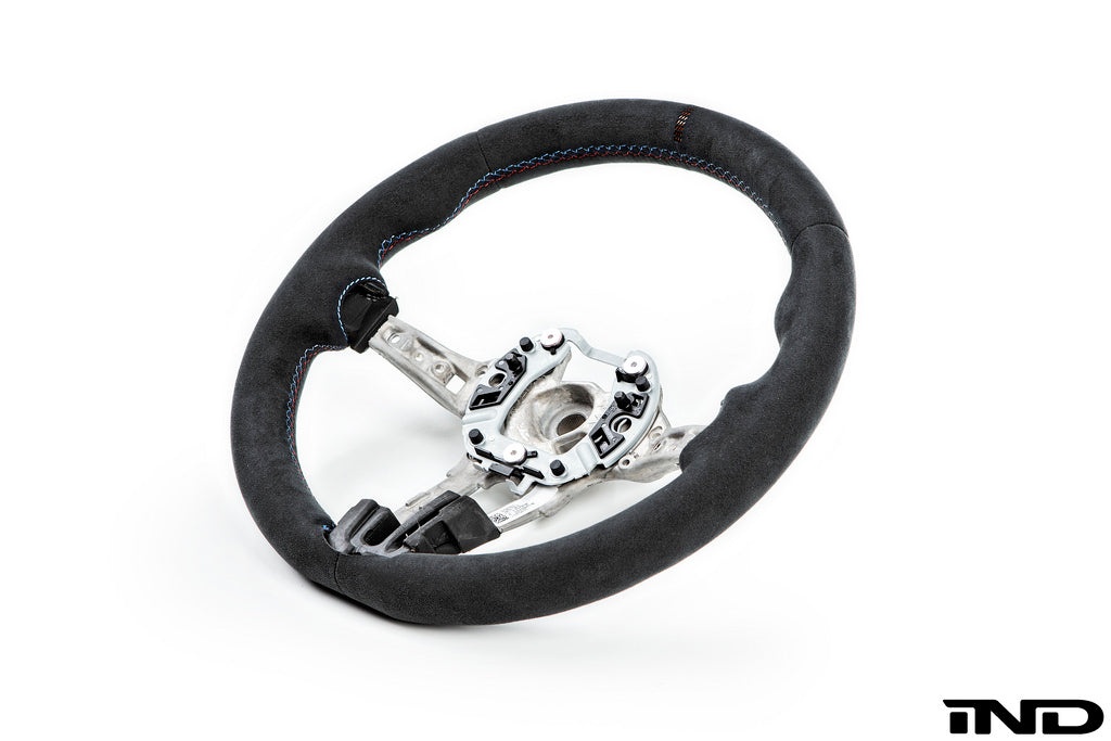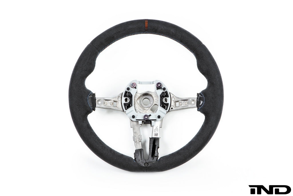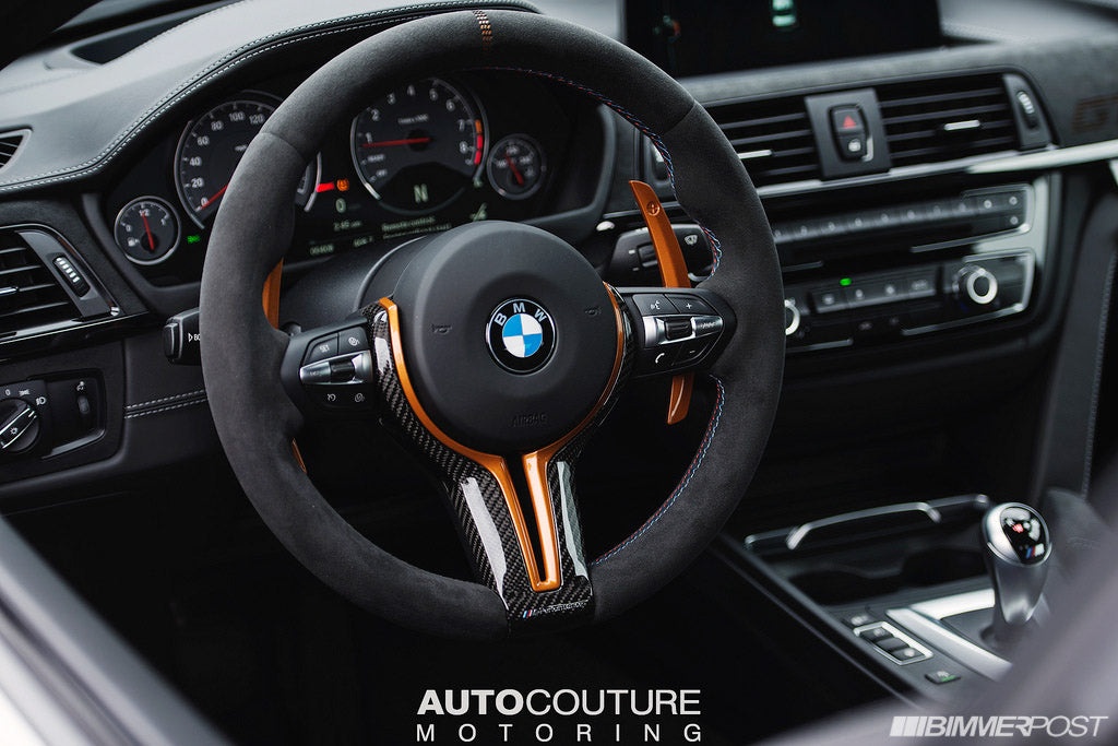 OEM BMW M4 GTS steering wheel. The steering wheel offers factory fit and finish.
