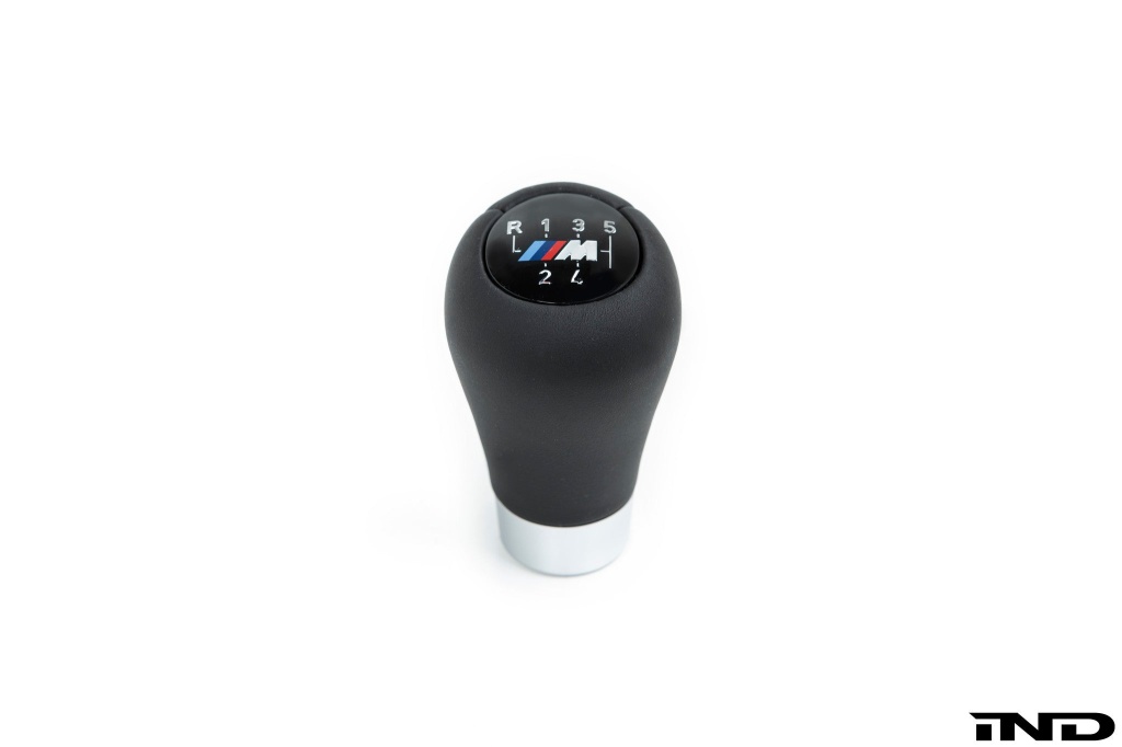 Genuine BMW Weighted M Style (ZHP) black leather shift knob. Fits most manual transmission BMW's and has ///M logo on 6 speed shift gate pattern.