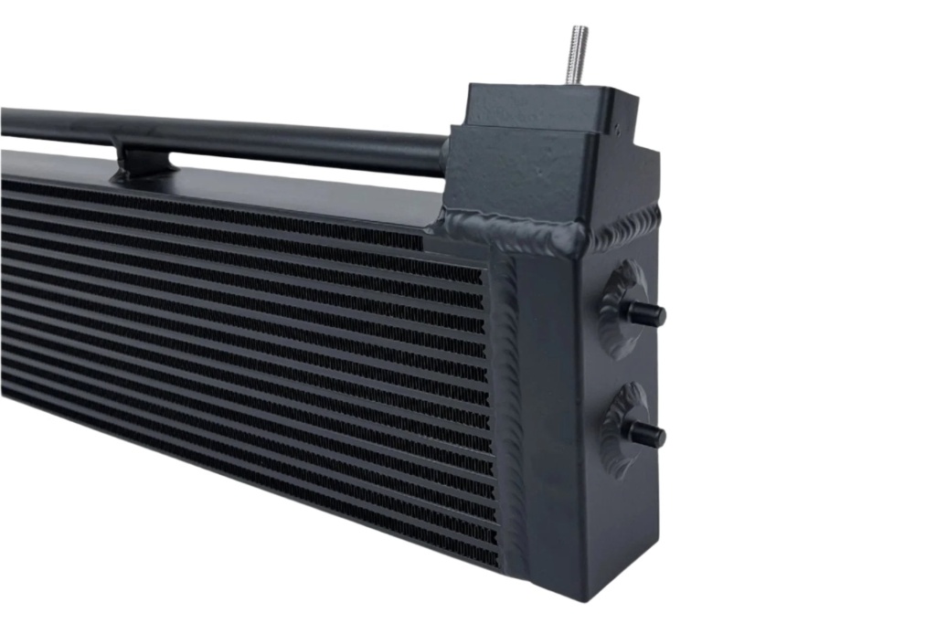 CSF’s solid line connection block can handle any abuse thrown at it while the reinforced and braced return tube is rock solid. CSF also upgraded the more fragile Tub/Fin core to a robust and durable Bar/Plate design. The core is 40% larger than the factory unit with 2 additional rows of oil cooling and much thicker core (63mm vs OE 45mm). This offers superior cooling capacity and volume for the oil system. TIG welded end tanks round out the slew of upgrades creating a much stronger connection than the factory brazed construction.