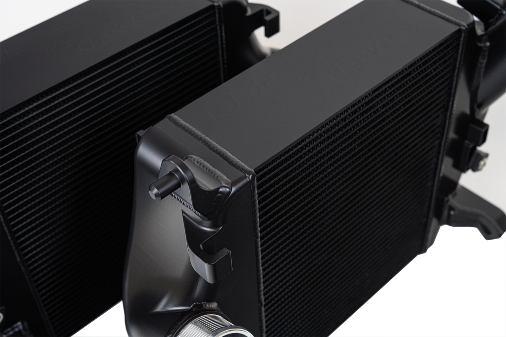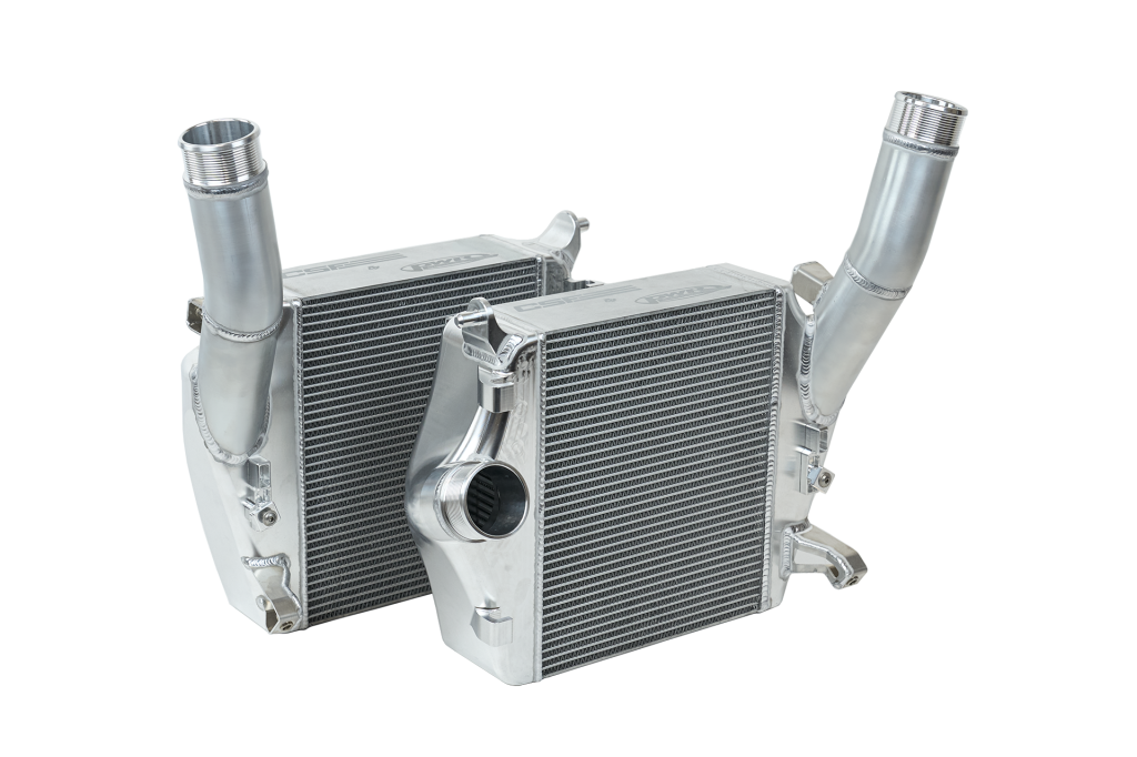 The 4.0L twin-turbo V8 in the Urus & RS Q8 starts to experience debilitating heat soak and progressively increasing IATs with the OEM intercoolers. This results in the ECU pulling engine timing and drastically decreasing power output. The CSF by PWR Intercoolers solve this issue and allow vehicles to perform at optimal levels consistently and for prolonged periods of time.