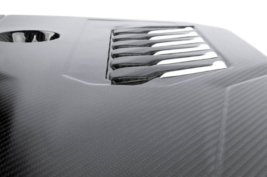Like the ever popular and lusted after E36/E46 Dinan carbon fiber valve covers of the past, the G chassis B58 engine cover mimics the BMW power stripes but with a Dinan twist. Beyond the legacy homage, the 2x2 gloss twill carbon fiber base gives way to opposing matte carbon fiber and white painted accents among the cylinder count callouts. This small touch adds visual intrigue to an otherwise largely feature deficient landscape. The conflicting finishes also carry the added benefit of tying together elements within the space that may be of the secondary finish for nearly limitless visual versatility in a single piece.