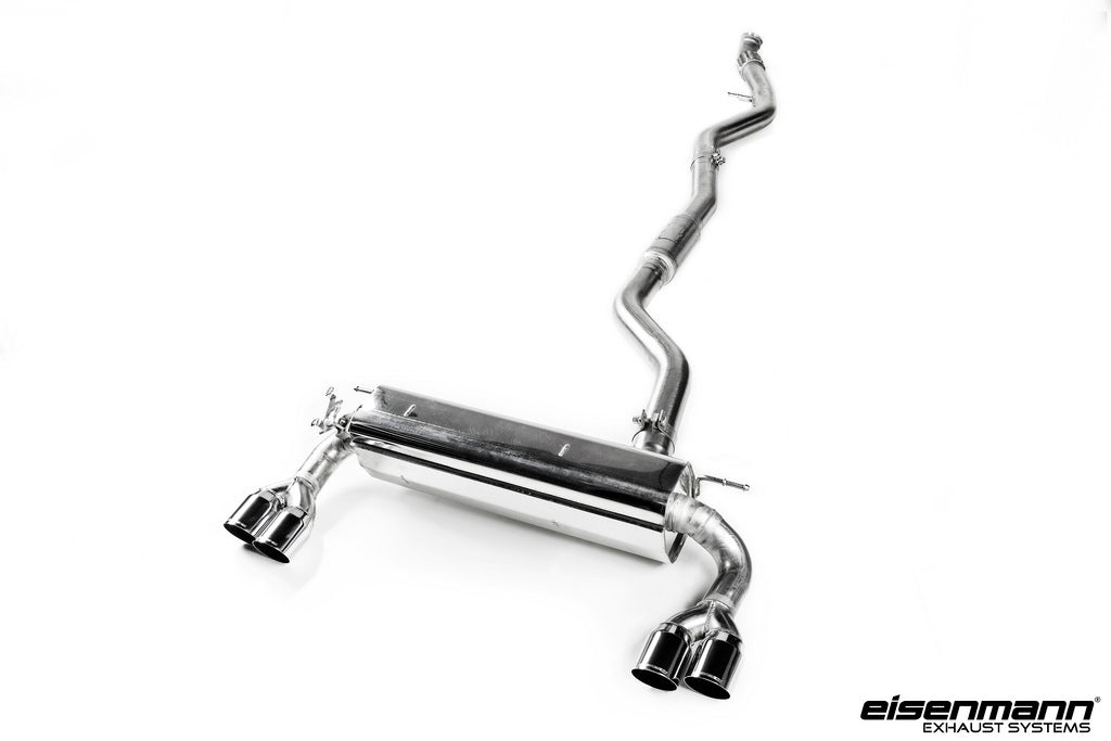 The Eisenmann BMW F22 M240i exhaust system features either 2 x 90mm tips Eisenmann's trademark tone for a deep sound at low RPM, and a true performance car scream at high RPM.