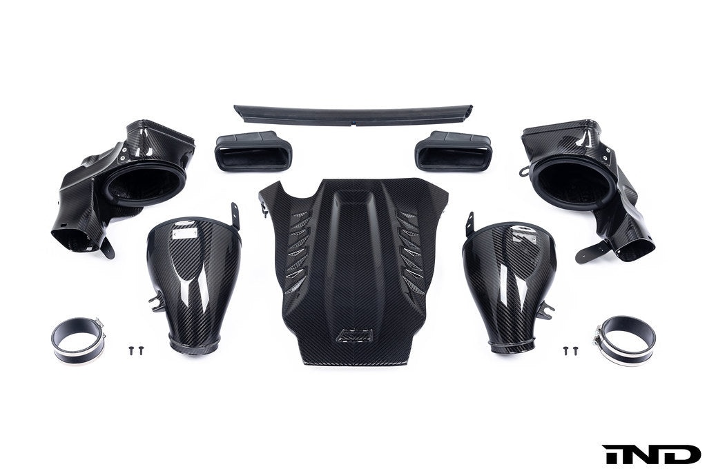 Introducing our F95 X5M, F96 X6M, G09 XM, M60i intake. This intake is the result of extensive R&D and testing to improve on the flow path of the stock system. Our system is a complete redesign of the stock airboxes with the aim of reducing pressure loss while increasing the flow rate and keeping inlet temperatures low. With the stock cold air feeds at the front of the car and the turbo inlets facing the rear of the car, the airflow has to negotiate a 180 degrees turn through each airbox resulting in a flow restriction. To overcome this we have introduced an additional cold air feed from the scuttle panel, which results in a more direct flow path to the turbo inlets. The additional feeds allow the intake to have a higher flow rate whilst keeping IATs low and have an additional benefit of de-restricting the sound of the turbos. With the intake openings now facing the cabin, the turbo flutter and pressure release sounds are clearly audible, elevating the driving experience to another level.