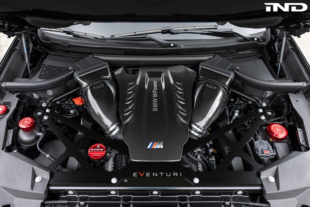 The F9X X5M, G09 XM Eventuri system uses our Patented Carbon Fiber Housings with our Gen 2 bespoke filters, which provide an aerodynamically efficient airflow path from the filter to the turbos. Not just another cone filter with a heat shield but a unique design which invokes the Venturi effect and maintains laminar flow conditions to reduce the drag on the turbo. You can read more about the housing design and how it works HERE.