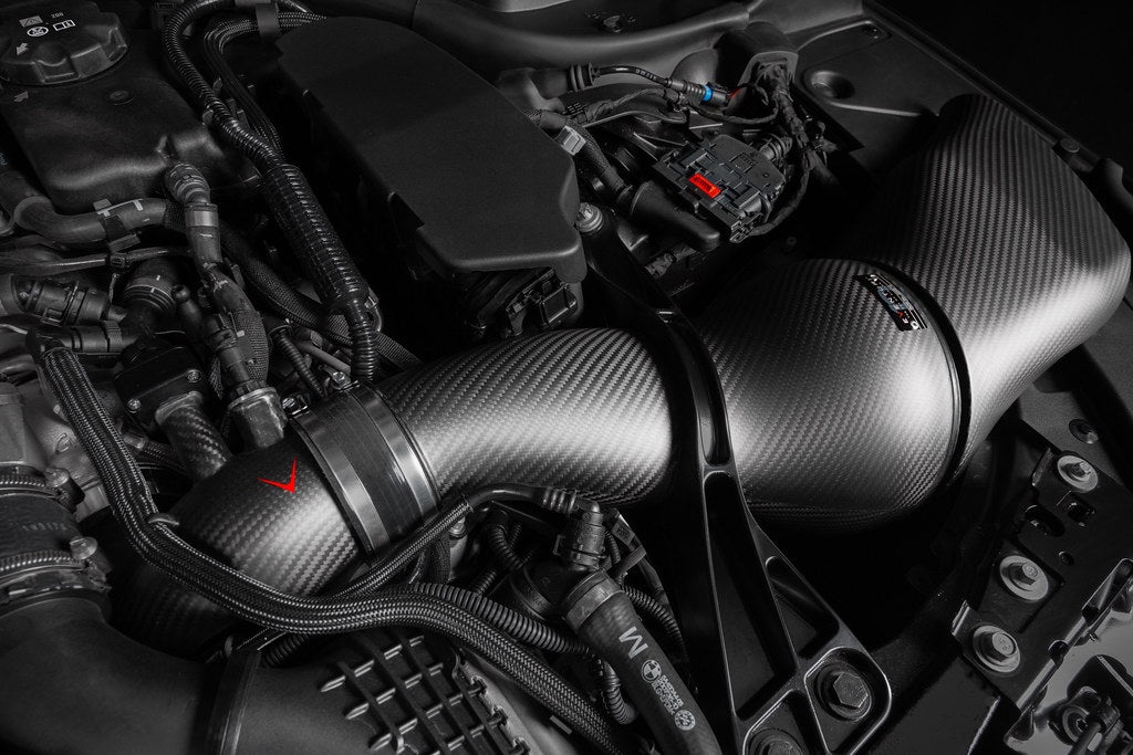 The G9X M5 Eventuri system uses our Patented Carbon Fibre Housings with our Gen 2 bespoke filters, which provide an aerodynamically efficient airflow path from the filter to the turbos. Not just another cone filter with a heat shield but a unique design which invokes the Venturi affect and maintains laminar flow conditions to reduce the drag on the turbo.