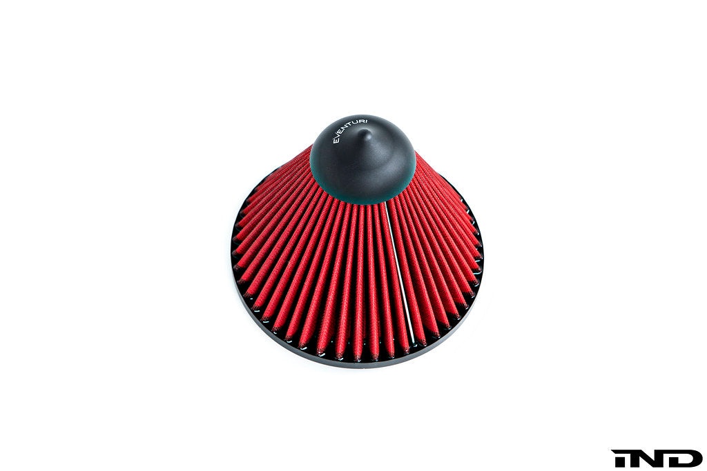 Unlike many other intake companies who use a generic filter, Eventuri has carried out extensive R&D and invested significant funds into their own unique filter design, so that it is optimized in a Patent Pending reverse mounted configuration. The filtration medium is constructed from non-woven mesh and is ISO 5011 tested which conforms to the same filtration standard as OEM filters.