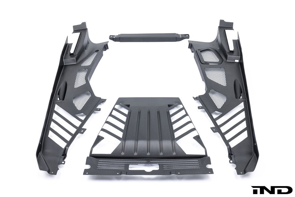 Made from prepreg carbon fiber, our complete engine cover set has cutouts to reveal our intake which is sold separately.