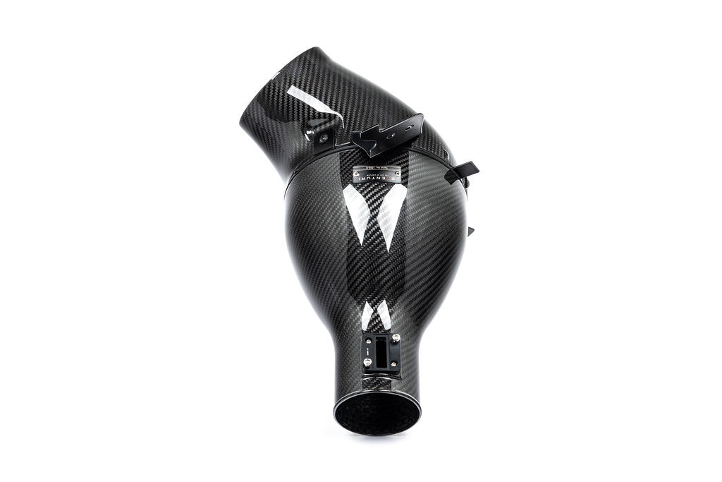 Introducing our Lotus Emira V6 Supercharged intake. This intake is the result of extensive R&D and testing to improve on the flow path of the stock system. Our system is a complete redesign of the stock airbox with the aim of reducing the resistance on the supercharger and keeping inlet temperatures low. By utilizing out patented Venturi Housing the airflow path is now much more direct and laminar in comparison to the cuboid OEM airbox. Our custom made EPDM hose is also much smoother internally in comparison to the stock hose, which has large ridges along the curved section that inherently create turbulence. Our version allows movement where it is necessary but then has a smooth curved section all the way to the throttle body. Finally our duct seals the filter housing and takes in cold air from the OEM location for minimized IATs.