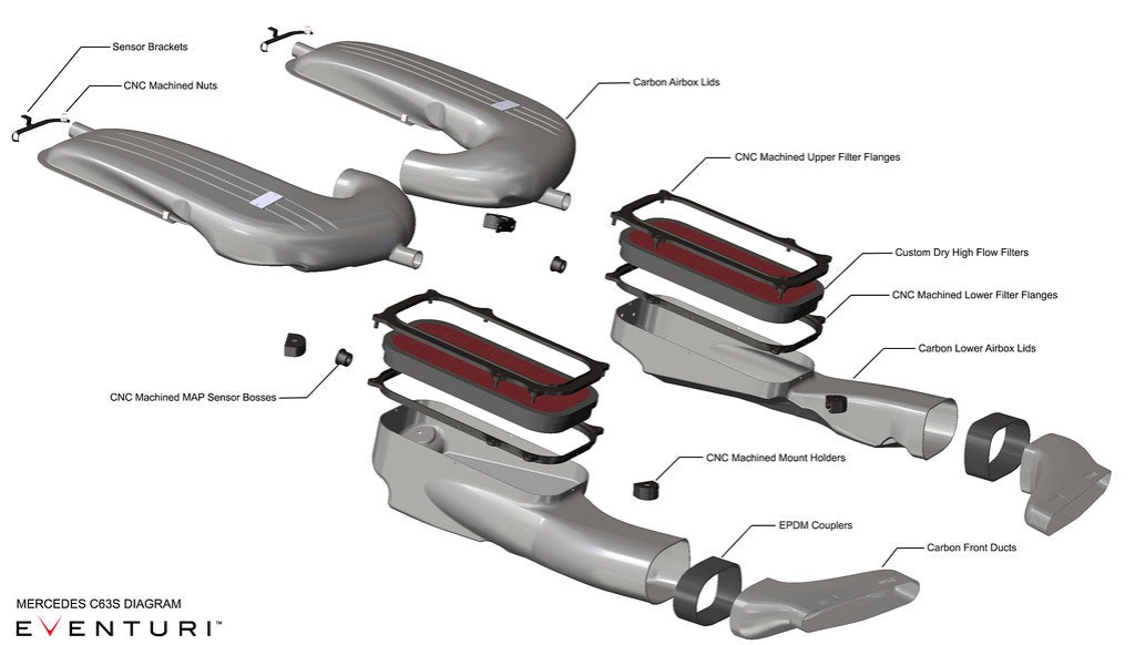 Replacement air filters (set of 2) for the Eventuri Carbon Air Intake System.