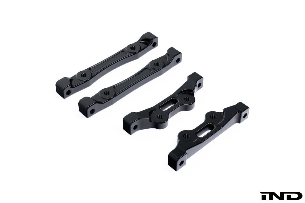 This bracket set provides the essential hardware required to install the BMW F8X carbon ceramic brake calipers on your E9X M3 or E82 1M. In addition to retrofitting the F8X CCBs, these caliper brackets also let you retrofit the 6 piston front and 4 piston rear calipers with steel brake rotors from the F87 M2 Competition!
